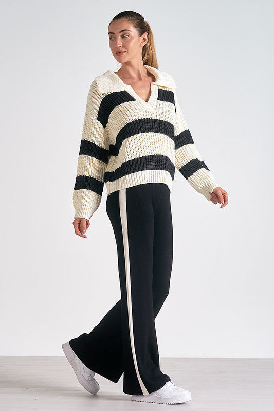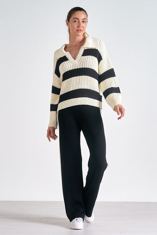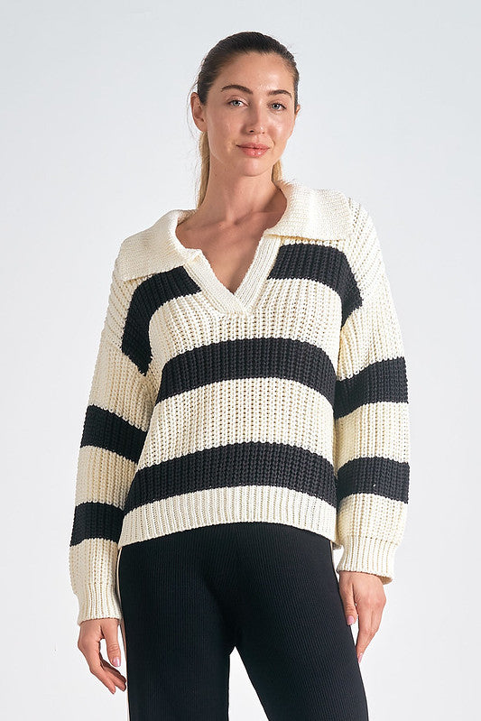 Unleash your chic side with our soft and stylish V-neck collared oversized sweater. Whether lounging at home or heading out for a day of shopping, this versatile piece offers comfort and fashion in one. Upgrade your wardrobe and make a statement with this must-have sweater!
