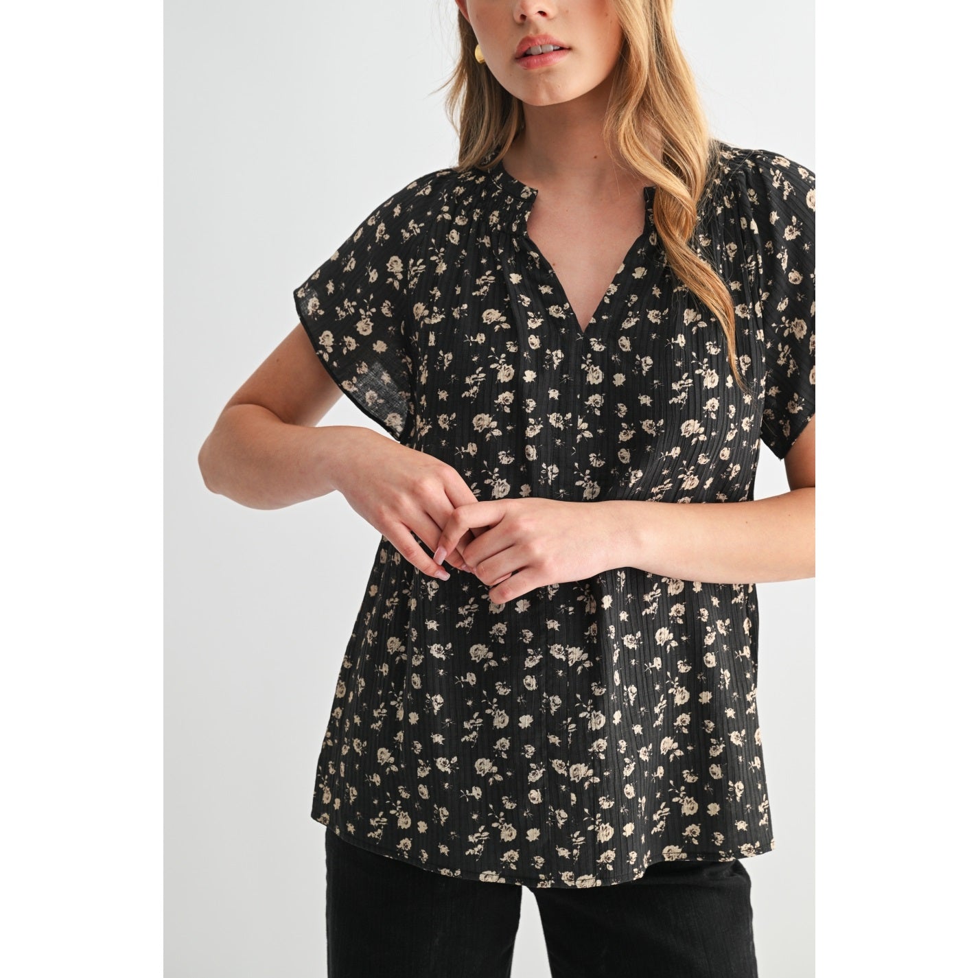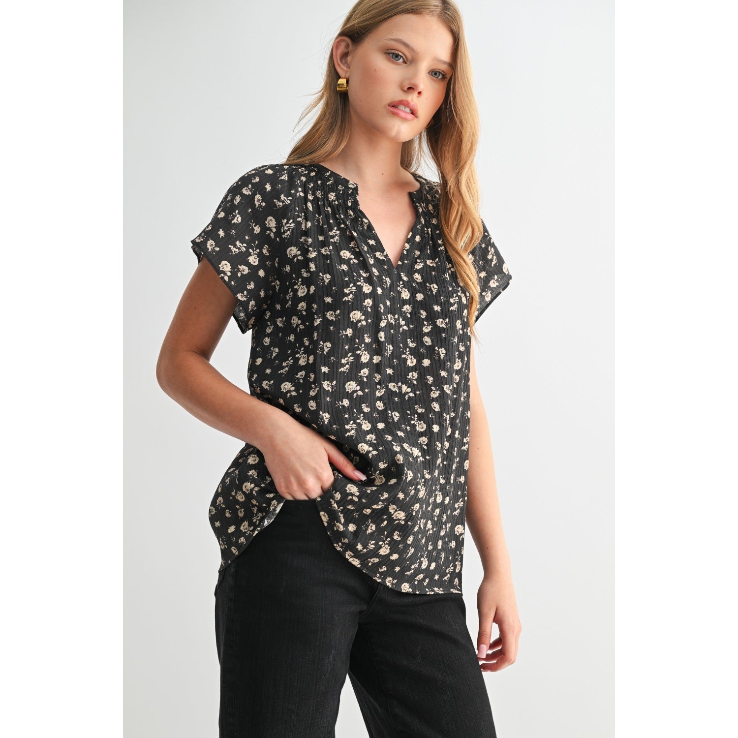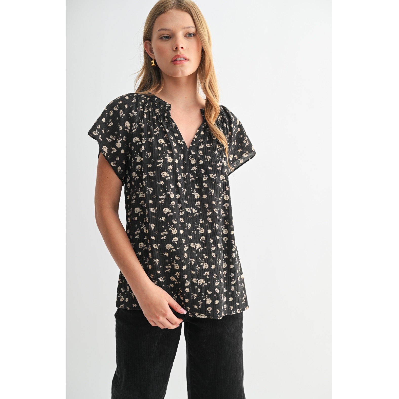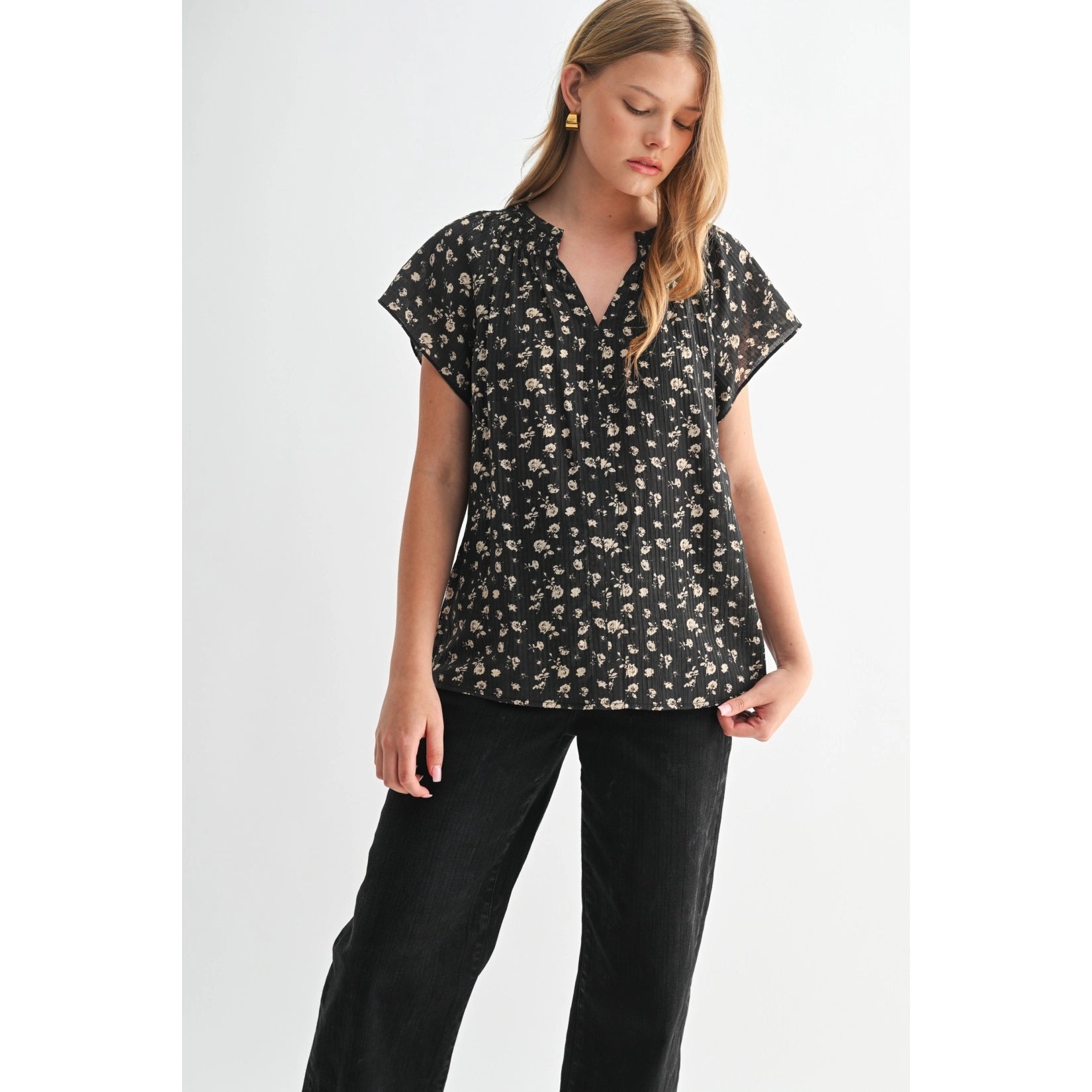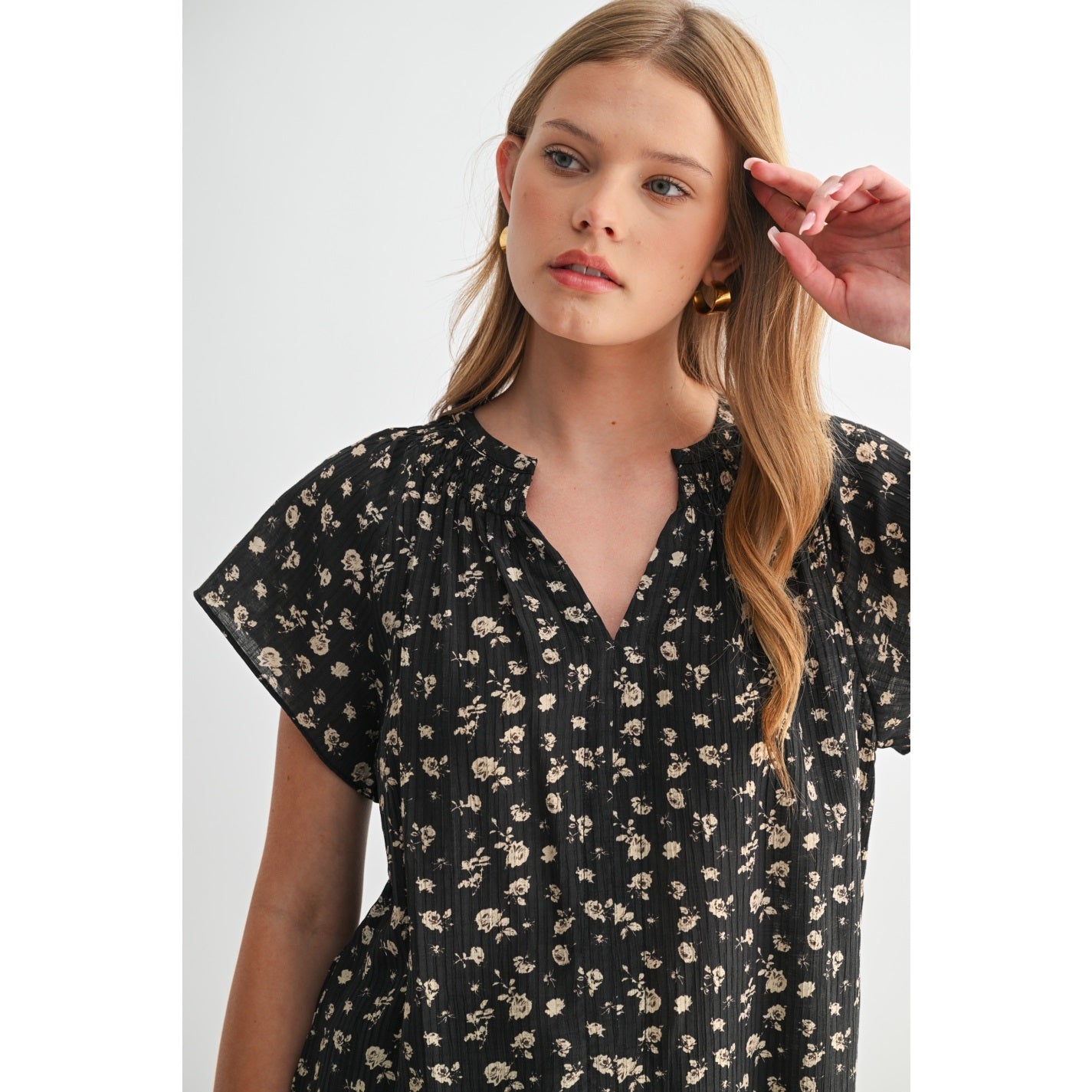 Embrace your unique style with our Ditsy Floral Raglan Short Sleeve Top. This top blends comfort with a fashionable floral design, making it an ideal choice for the everyday woman. Its raglan short sleeves add a touch of elegance to your outfit, ensuring you stay on trend. This top is a perfect addition to your wardrobe.