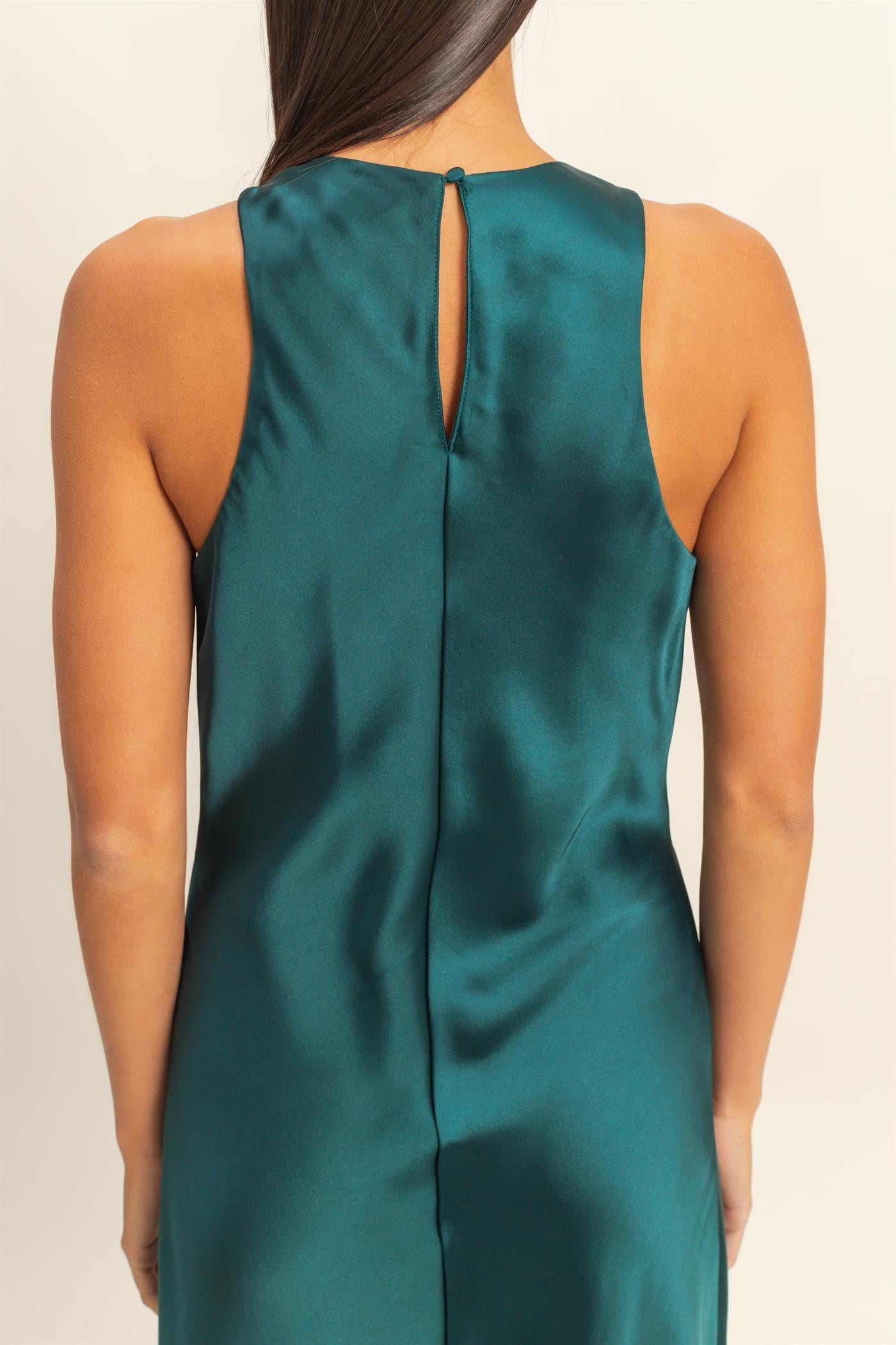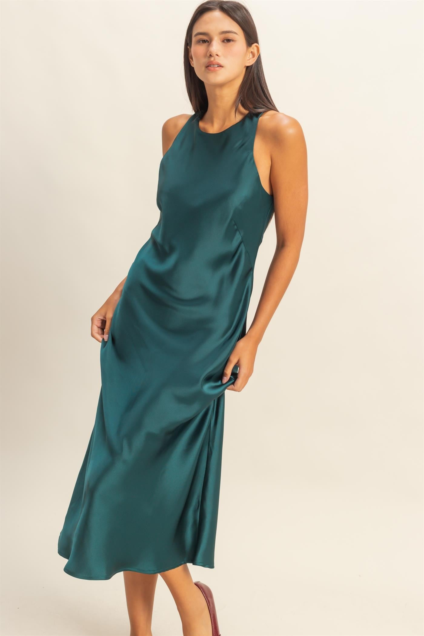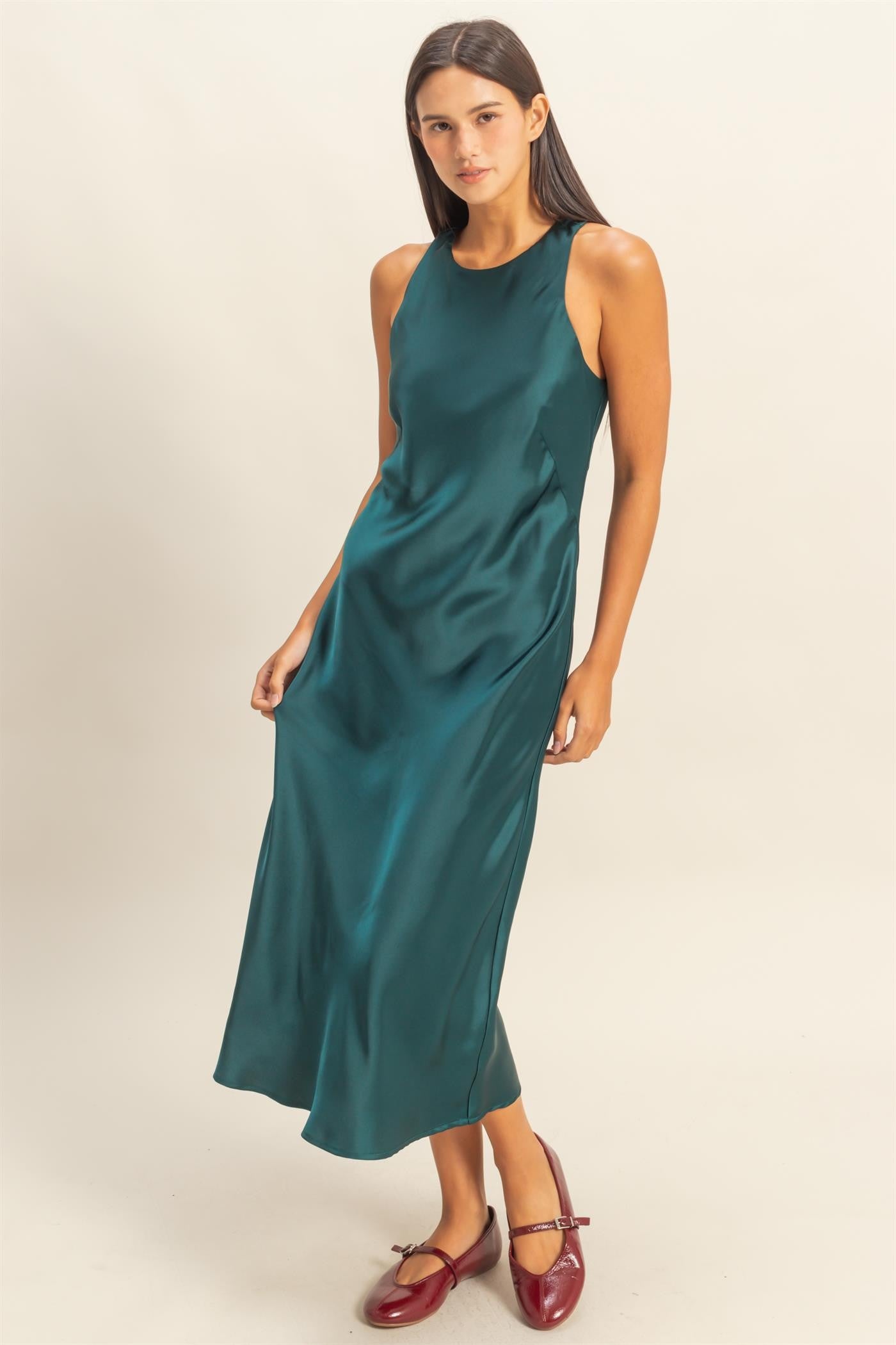 Elevate your style effortlessly with the Look My Way Satin Sleeveless Midi Dress. Featuring a flattering round neck, cutaway shoulders, and a fitted bodice that flows into a relaxed midi hem, this dress combines comfort with elegance. The keyhole back with button closure adds a subtle, sophisticated detail. Crafted from 100% polyester for a smooth satin finish, it’s perfect for chic occasions. Designed in the USA and imported, this dress promises a polished look that’s easy to wear and hard to forget.