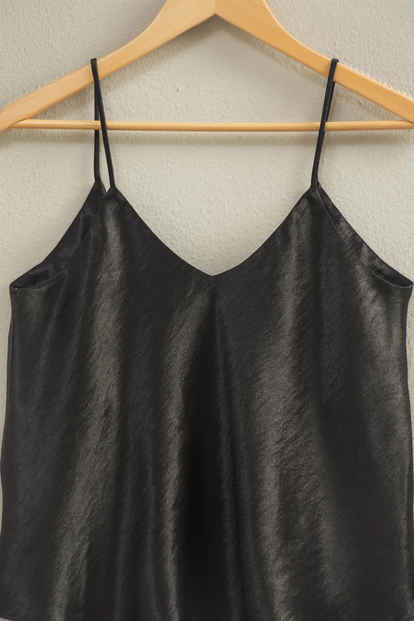 Look Absolutely Irresistible In This Ravishing Top! Complemented With An All Over Metallic Sheen That Will Catch Light Beautifully, It Is Tailored With A Gorgeous V Neckline That Is Supported By Delicate Shoulder Straps.