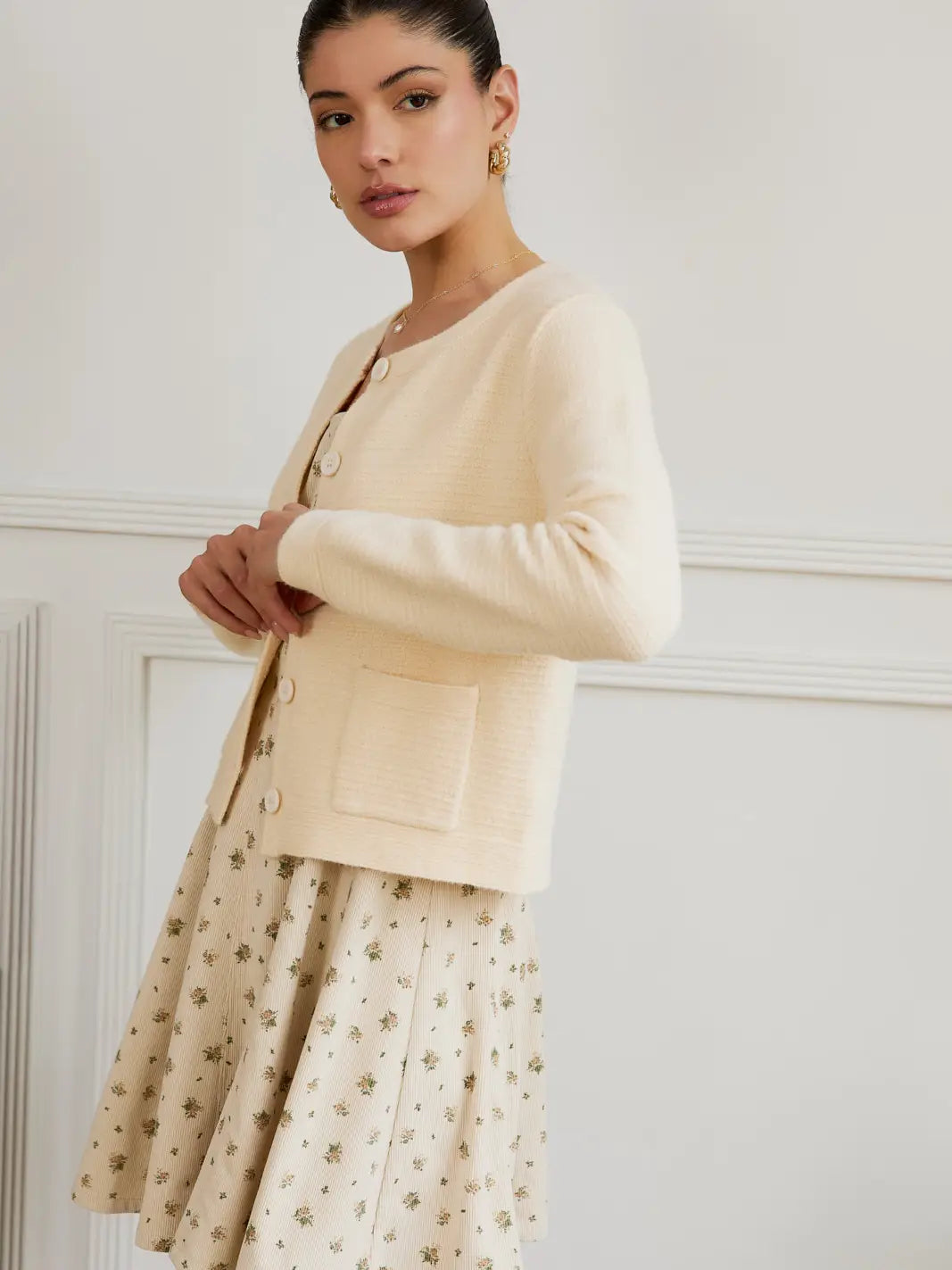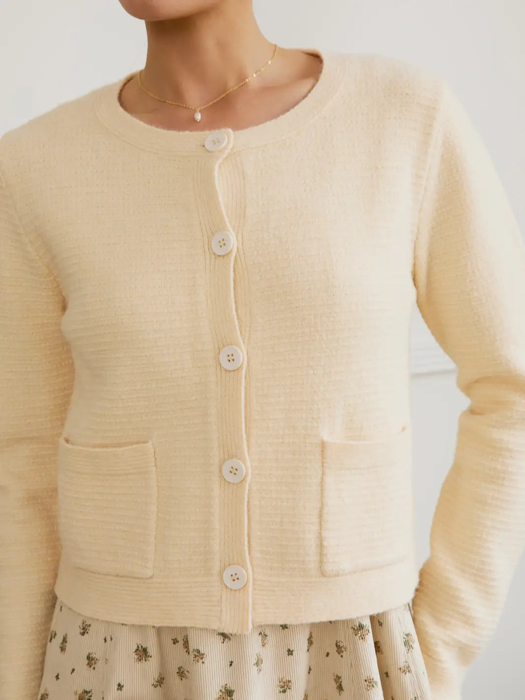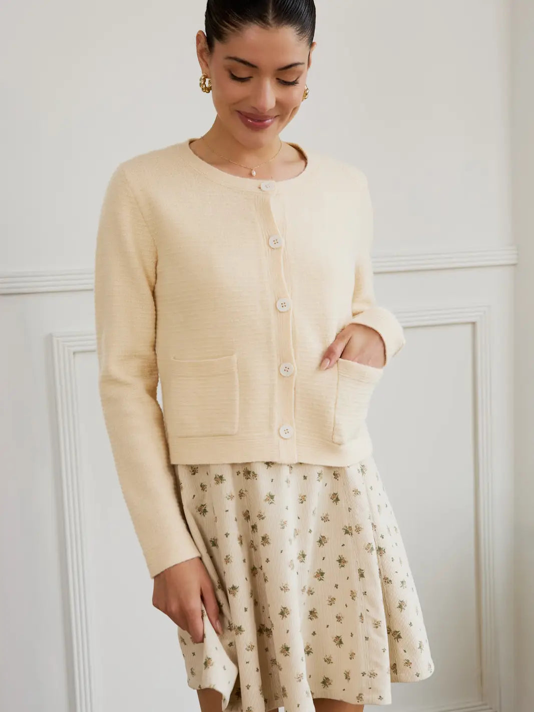 The Eloise Cardigan combines cozy warmth with timeless style. Featuring a button-up front and long sleeves, this sweater cardigan is perfect for layering on cooler days. Its soft fabric ensures comfort all day long, while the classic design adds a polished touch to any outfit. Elevate your wardrobe with this versatile piece that effortlessly transitions from casual to chic.